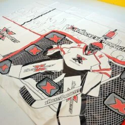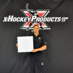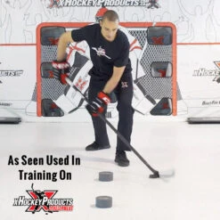 6 pack of orange training pucks in a mesh bag with a drawstring close. 10 oz.