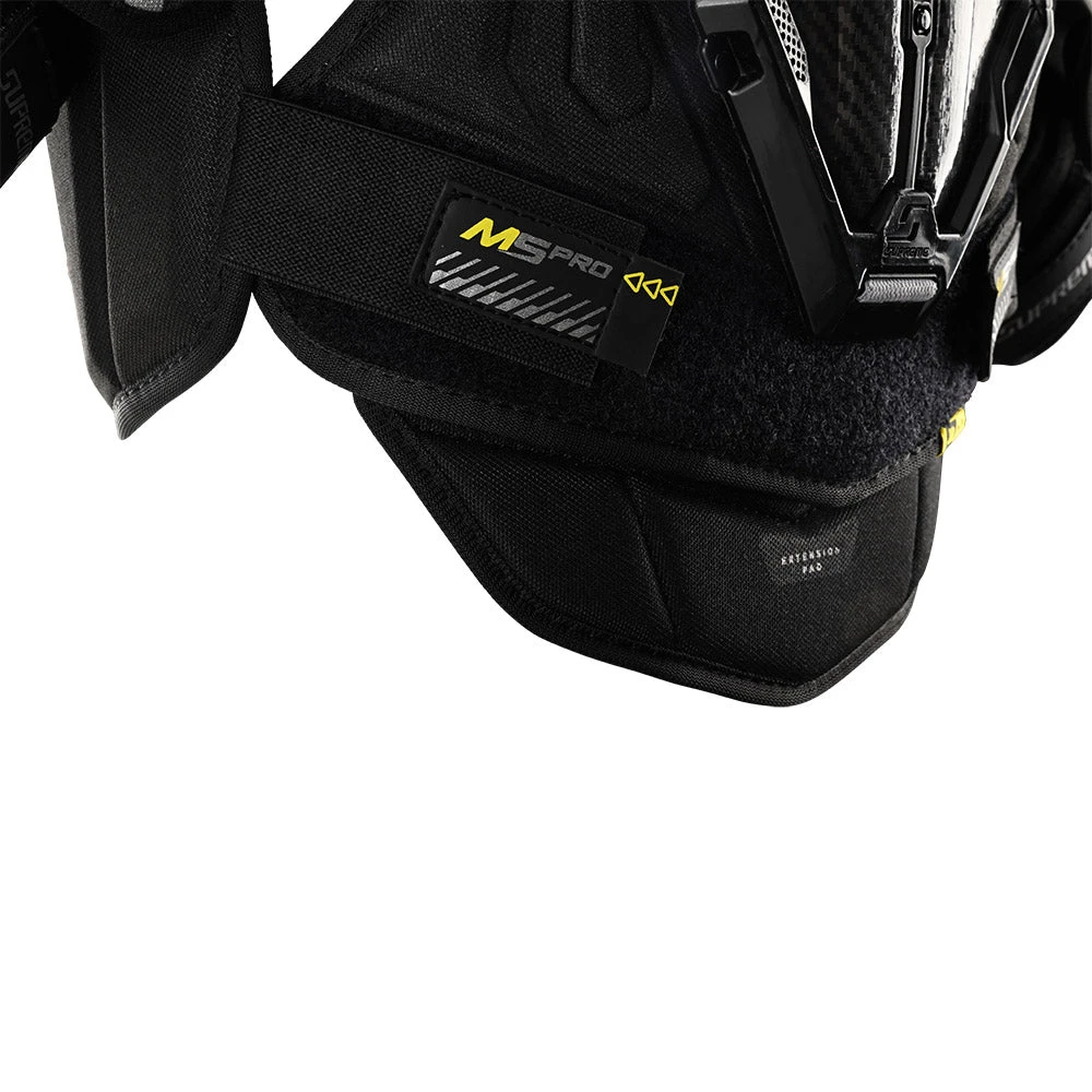 The M5PRO shoulder pads are the second model in the 2023 Bauer Supreme lineup and deliver excellent mobility and protection for the performance level player. Building on the performance of the previous generation 3S Pro shoulder pads, the new M5PRO model integrates a CURV composite sternum and AMP split biceps with CURV which provides more lightweight impact protection and enhanced mobility.