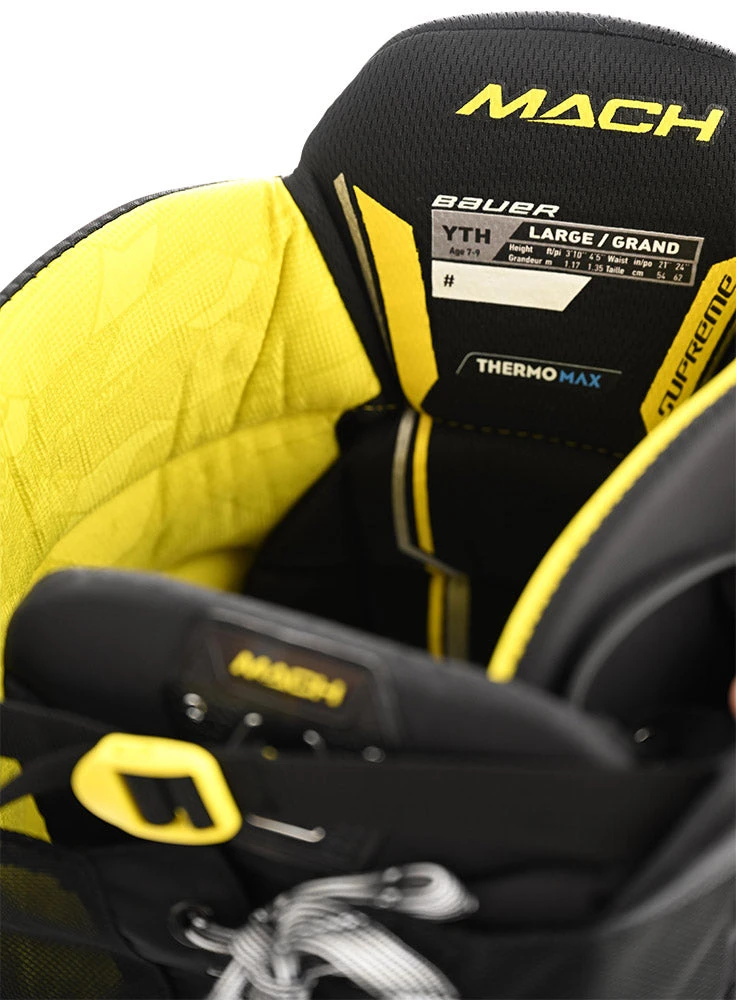 The Mach hockey pant is the top model in the 2023 Supreme lineup and delivers maximum impact protection and mobility for the elite and pro level player. Building on the performance of the previous generation Ultrasonic, the new Mach model features upgraded spine protection, which provides the player with confidence and full coverage.