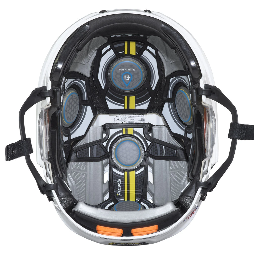 The CCM Tacks 910 Hockey Helmet provides top-flight protection and comfort for the elite level player. Equipped with Fluid Inside pods and CCM’s rate-sensitive D30 Smart Material, this bucket is designed to distribute impact energy evenly in complete comfort. Includes an FM780 Facemask.